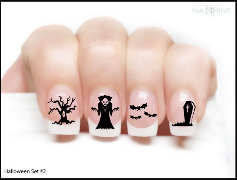 Halloween Nail Decals Dracula Nail Wrapsbats Tombstone Etsy