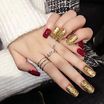 Amazon Com Shiny Red Fake Nails Square Medium Press On Nails