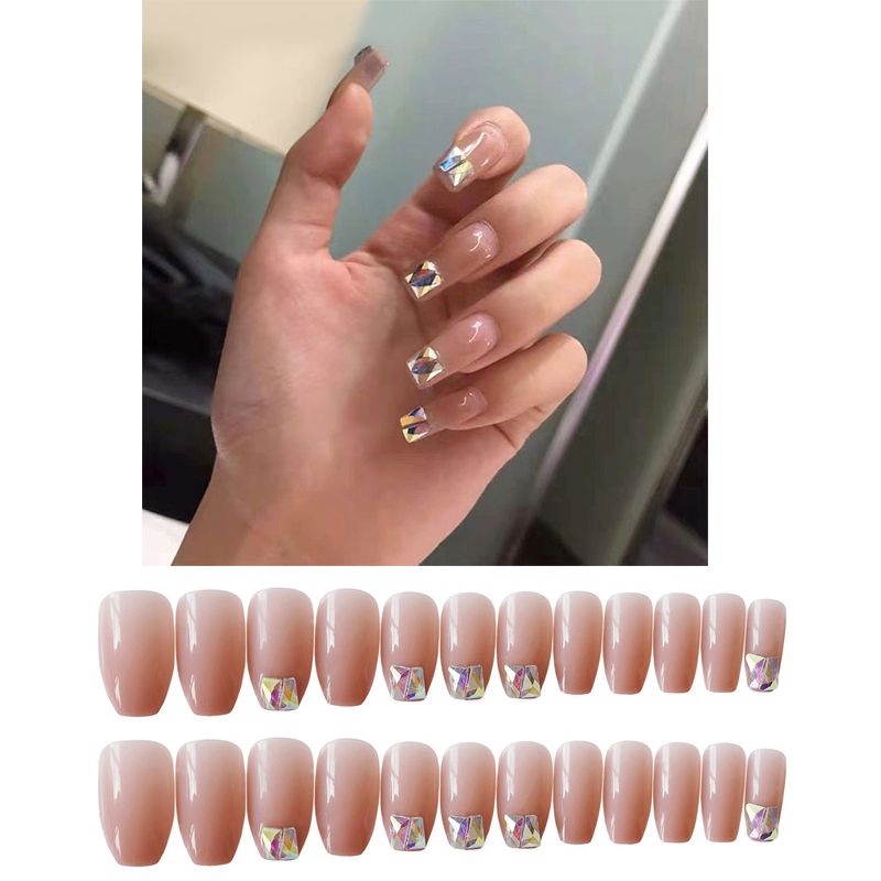 European Ballerina False Nails Square Rhinestone Long Coffin Shaped