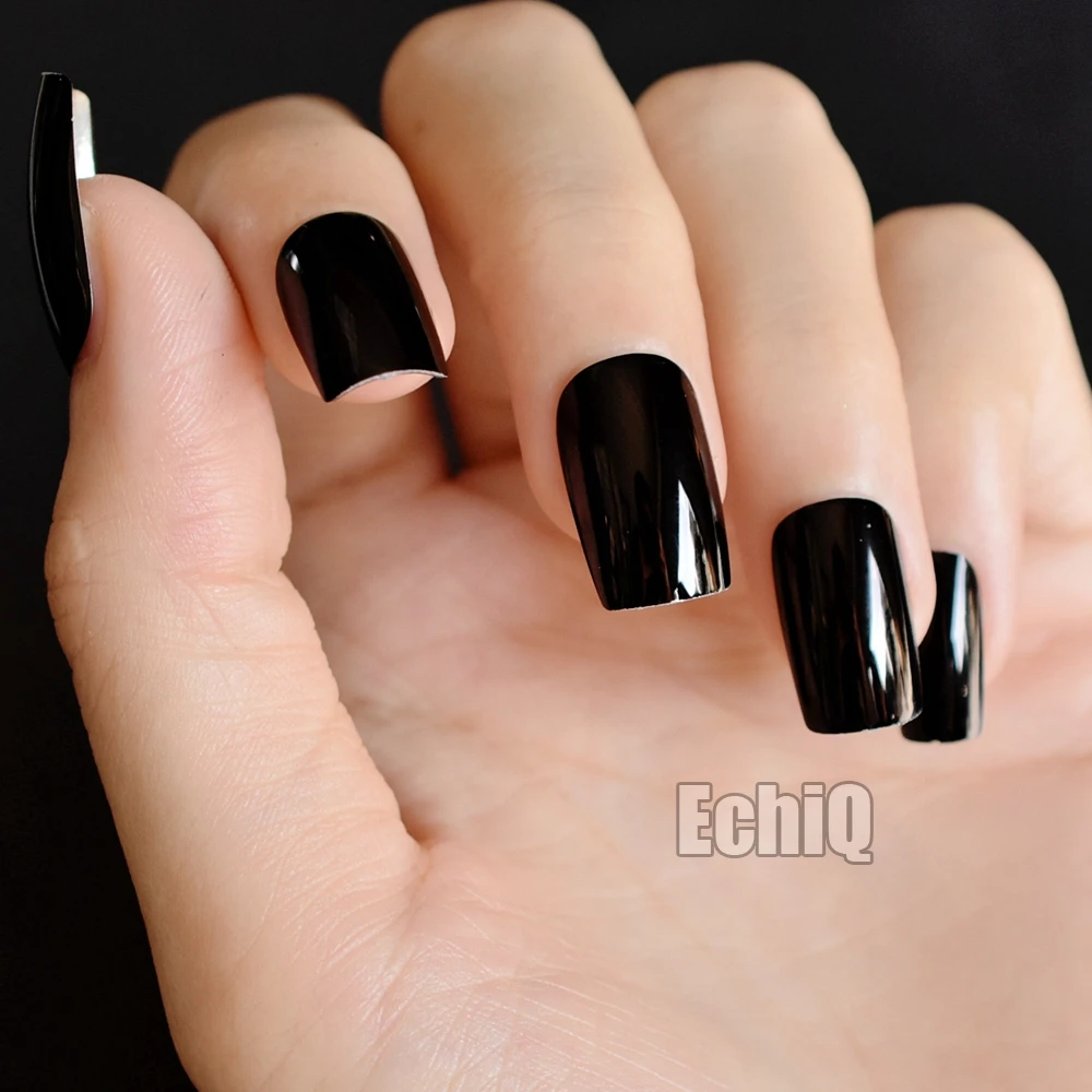 Cool Black Metallic Nail Art Tips Squoval Shape Long Mirror Acrylic