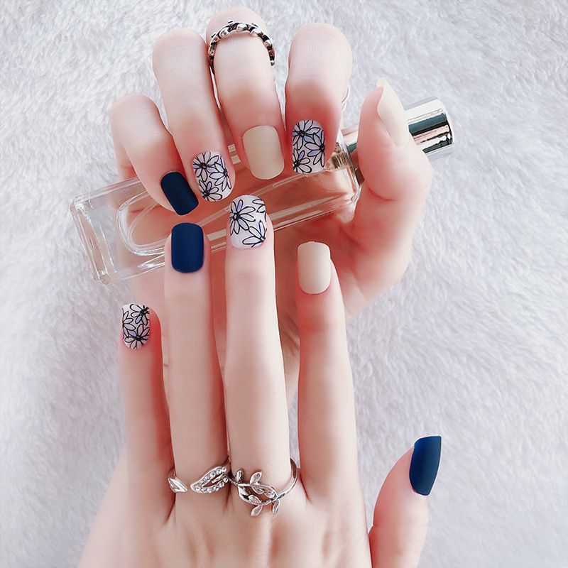 Squoval Fake Nails Medium Length Matte Feel Scrub Diy Nail Art