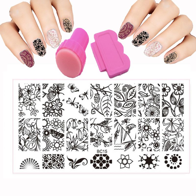 Nail Art Stamp Stencil Stamping Template Plate Set Tool Stamper