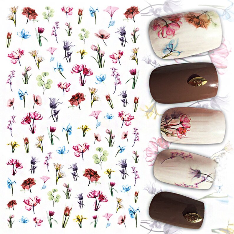 Flora Nail Stickers Decals On A Sticky Basis Nail Art Etsy
