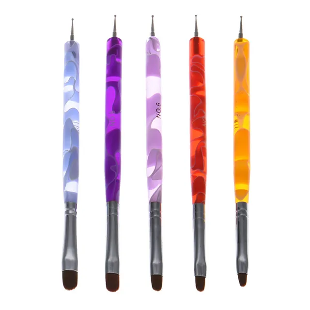 5pcs Dotting Tool 5pcs 2 Ways Acrylic Uv Gel Nail Art Dotting Brush