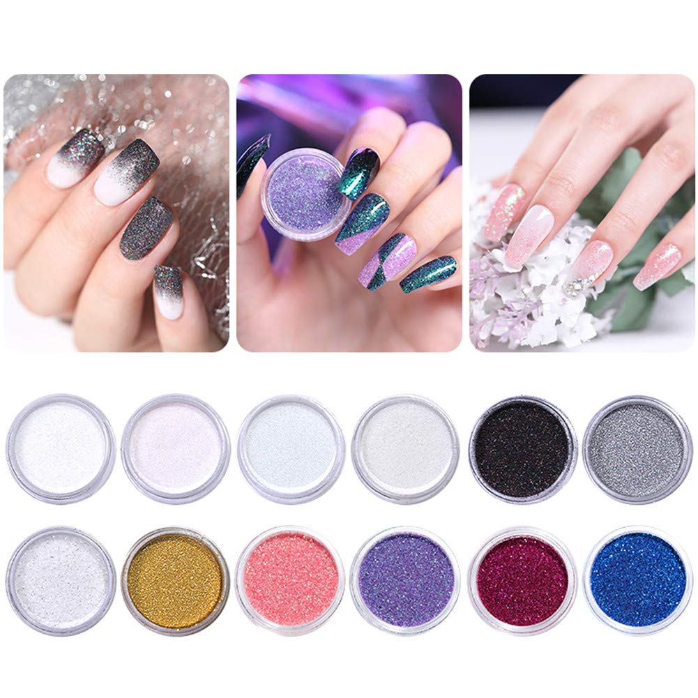 Amazon Com Nicole Diary 12 Boxes Holographic Nail Glitter Gradient