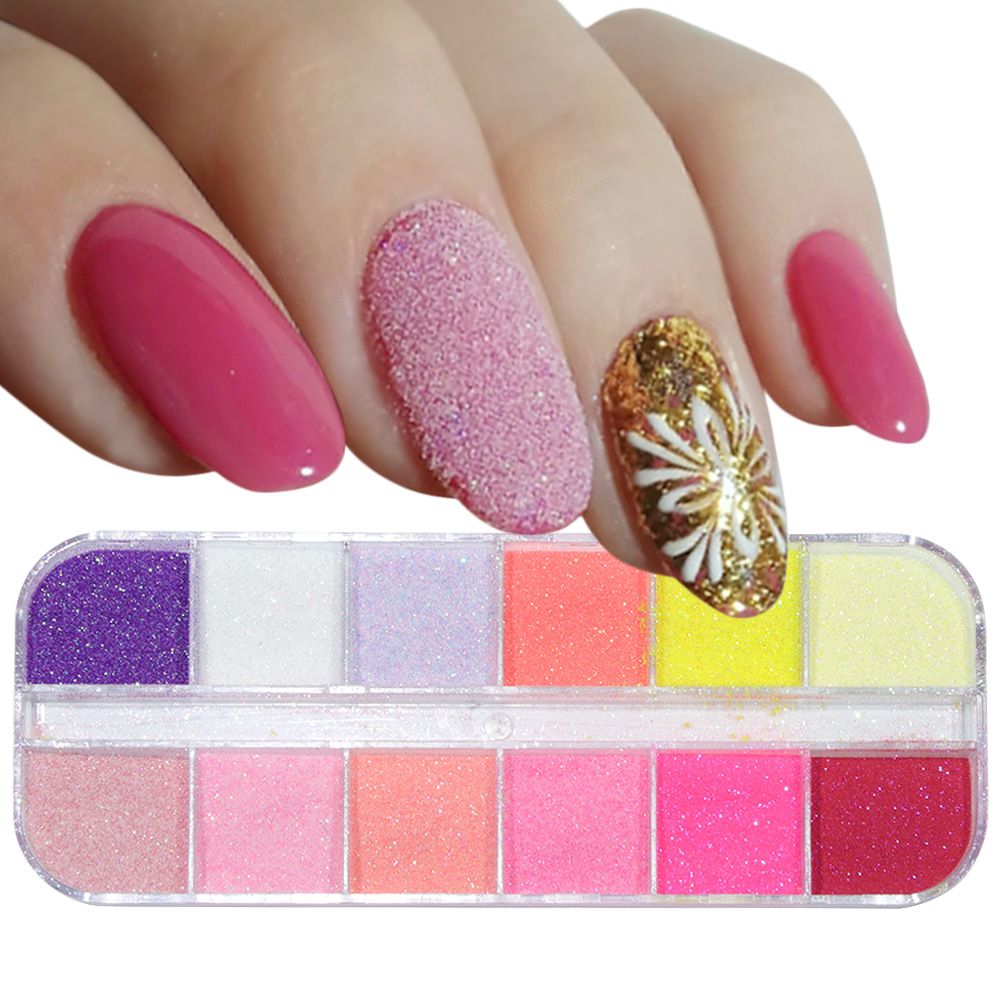 12 Grids Box Sugar Mixed Colorful Nail Glitter Powder Candy Holo Diy