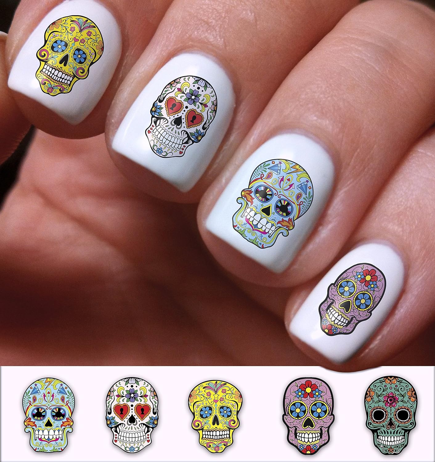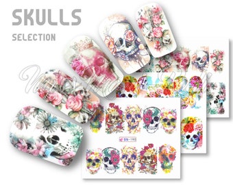 Sugar Skull Nail Decals Assortment 1 Water Slide Nail Art Decals