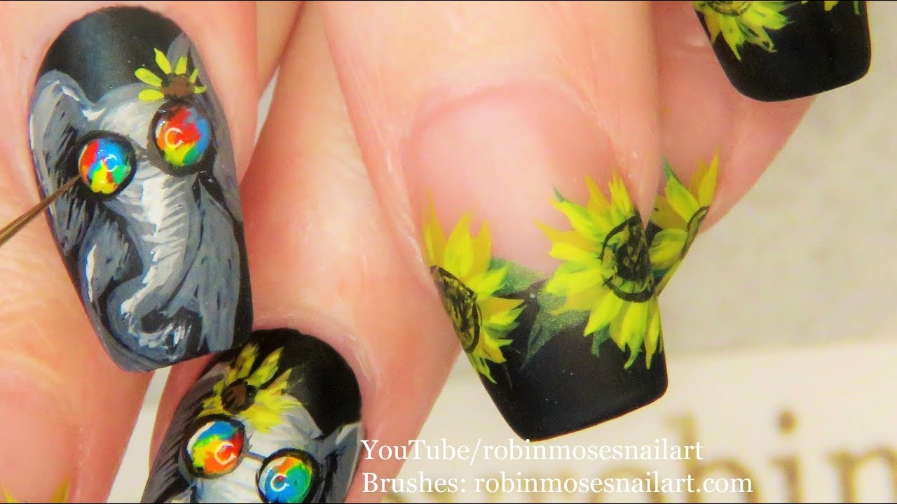 Easy Sunflower Nails Extra Elephant Nail Art Design Tutorial Youtube