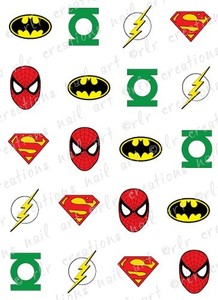 20 Nail Decals Comic Superhero Asst Water Slide Nail Art Decals