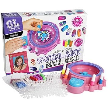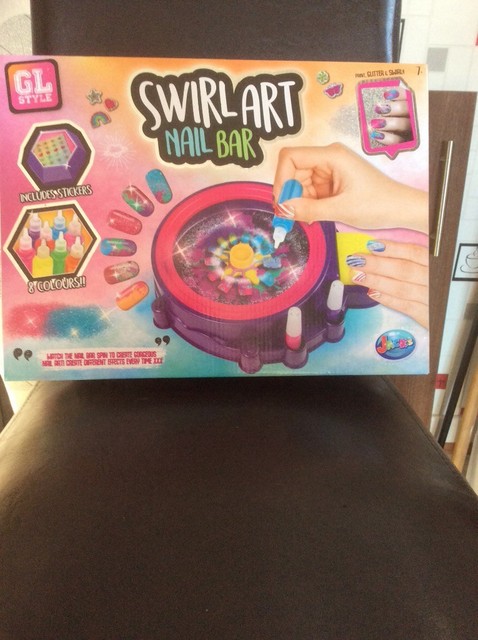 Girls Nail Art Swirl Machine Kit Glitter Polish Spa Paint Manicure