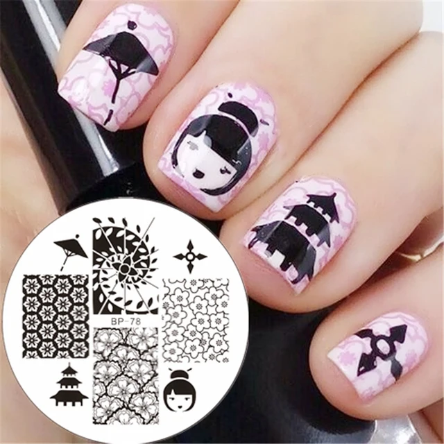 Oriental Cherry Theme Nail Art Stamp Template Image Plate Born