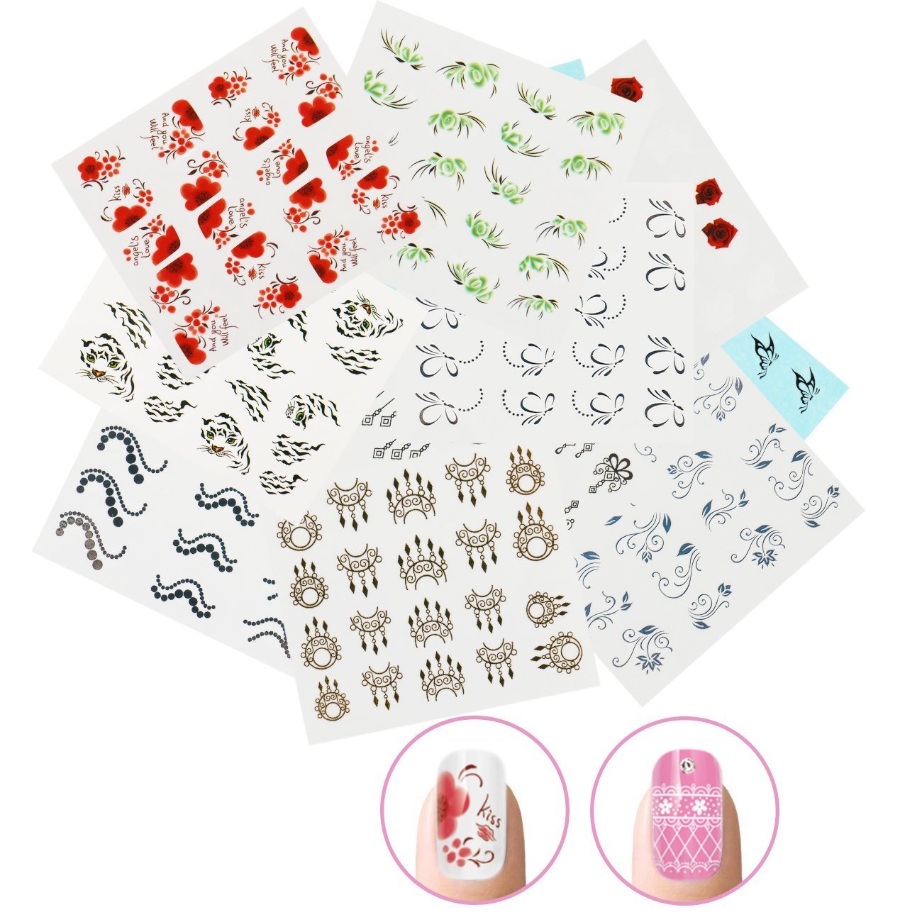 Amazon Com Nicedeco 15 Sheets Nail Stickers Nail Tattoo 3d Nail Art
