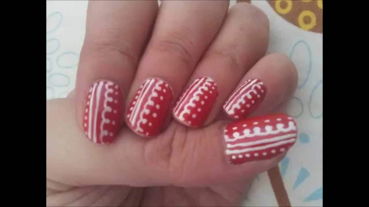 Red White Traditional Nail Art Youtube