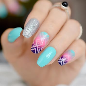 Amazon Com Medium Ballerina Nail Art Tips Traditional Race Pattern