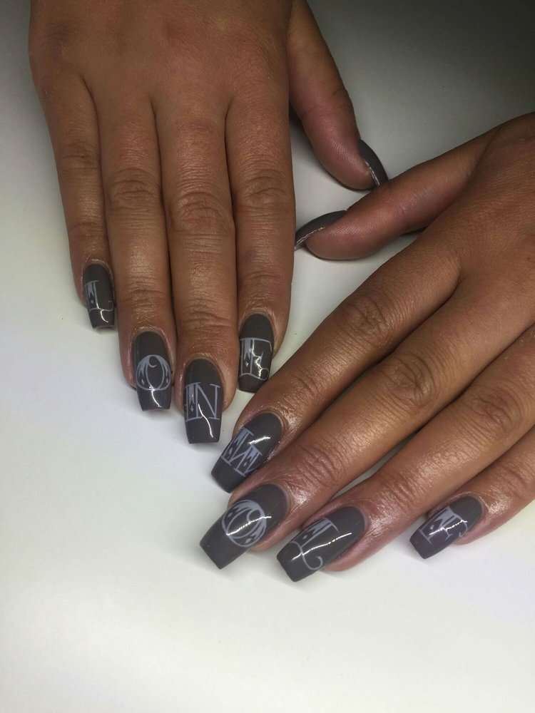 Acrylic Extensions With Hand Painted Nail Art Traditional Tattoo