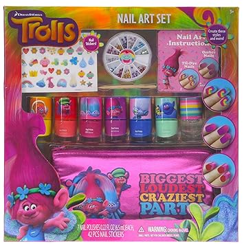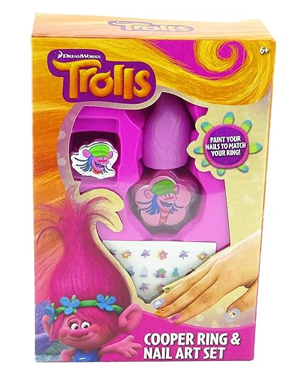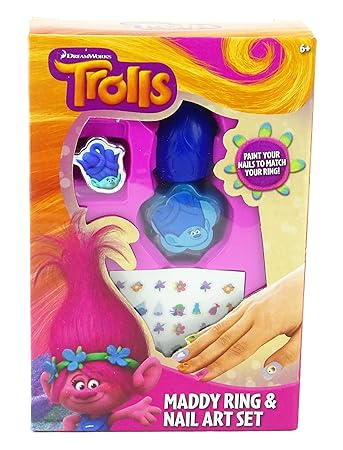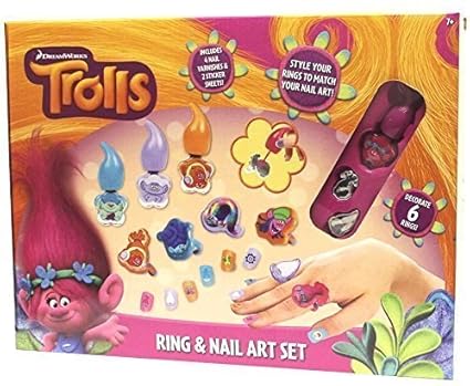 This arts and crafts set allows you to make your very own rings and nail art with your favourite trolls charactersbr br create and decorate 6 troll rings also create beautiful beautiful nail art with the nail varnishes and stickers included inside.