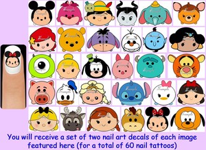 60x Tsum Tsum Nail Art Decals Free Gems Disney Mickey Minnie Mouse