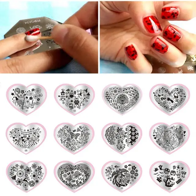 Love Heart Shape Nail Art Stamping Plates Stainless Steel Diy 12
