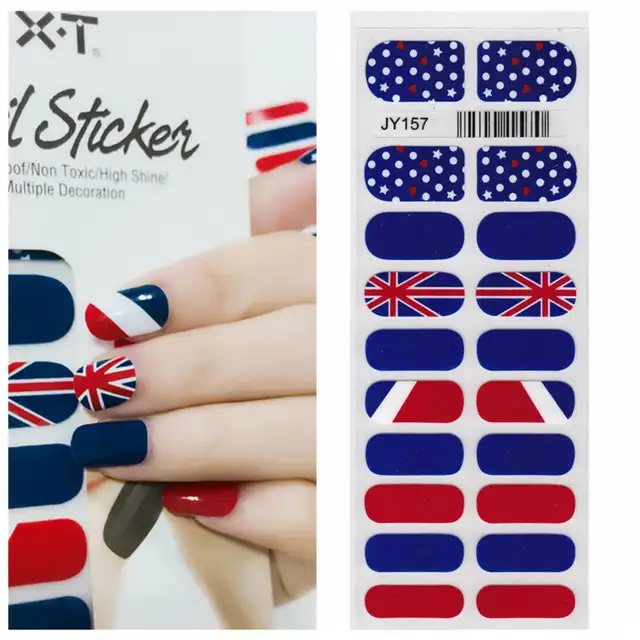 Us 1 29 X T Xt Nail Polish Strips British Flag Waterproof Non Toxic Nail Sticker Nail Art Decorations Nail Art Sticker 1 Sheet 20pcs In Stickers