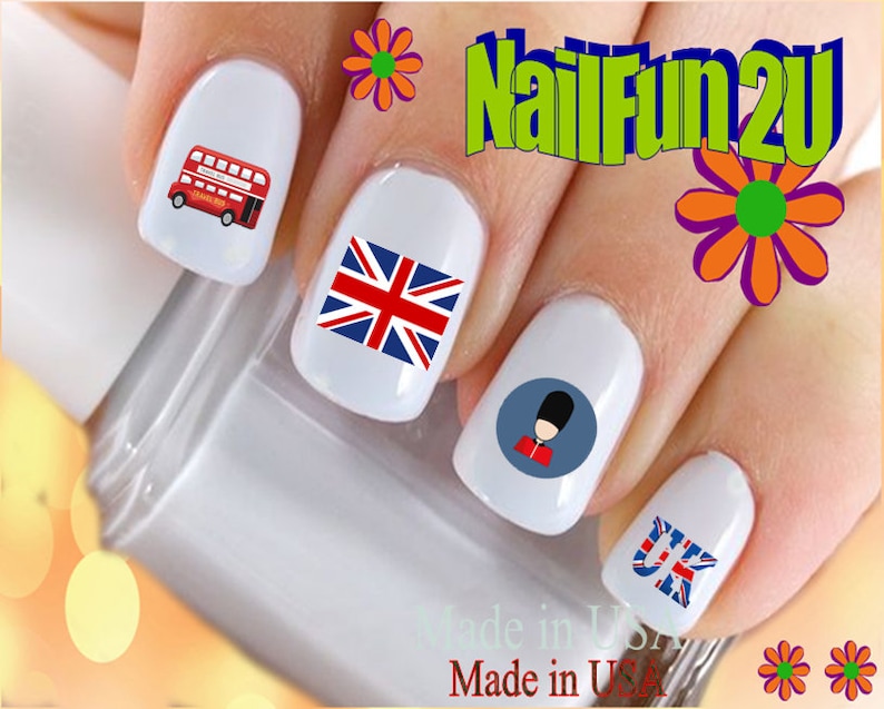 Countries Nail Decals British Flag Fun Icons Uk London Bus Nail Art Set 522 Waterslide Nail Decals Transfers Stickers Manicure Nails