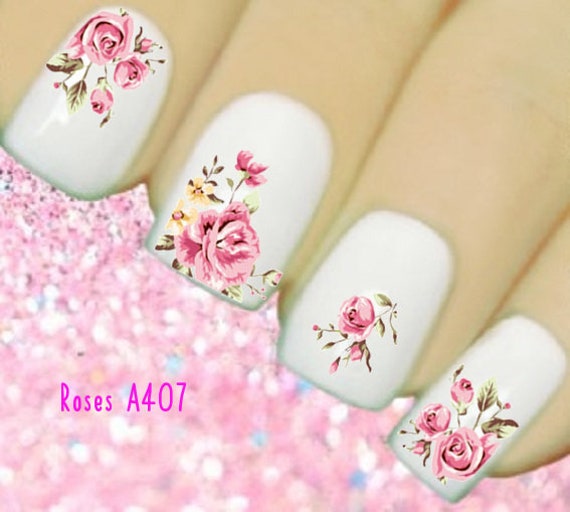 Roses Vintage Bouquet Nail Art Water Transfers Nails Tips Etsy