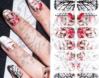 Items Similar To Pink Flowers Zebra Print Nail Art Water Full Wraps