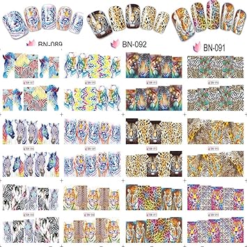 Amazon Com 12 Sheets Animal Tiger Lion Zebra 3d Nail Art Stickers