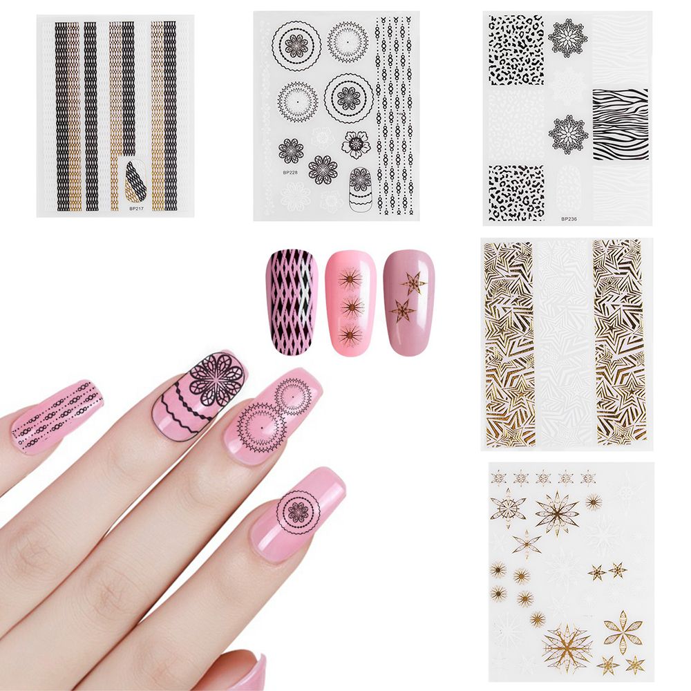 Laser Hollow Gold Black White Lace Flower Leopard Zebra Nail Sticker