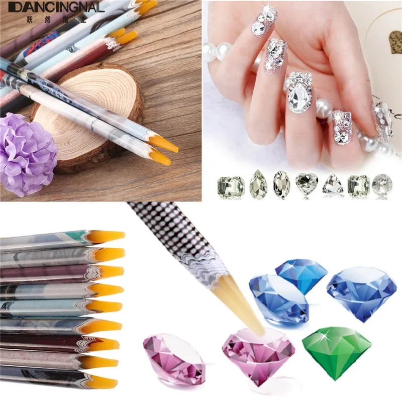 Fancyleo 1 Pcs Wax Pencil Rhinestone Applicator Application Nail Art Rhinestones Gems Pick Up Tool