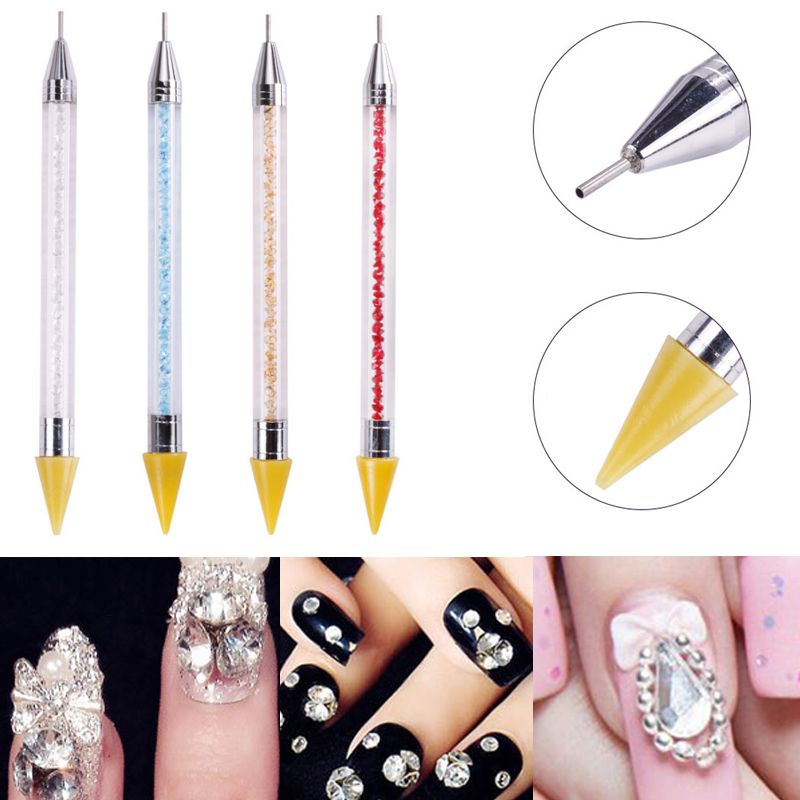 1pc Dual Ended Nail Dotting Pen Crystal Beads Handle Rhinestone Studs Picker Wax Pencil Manicure Glitter Powder Nail Art Tools