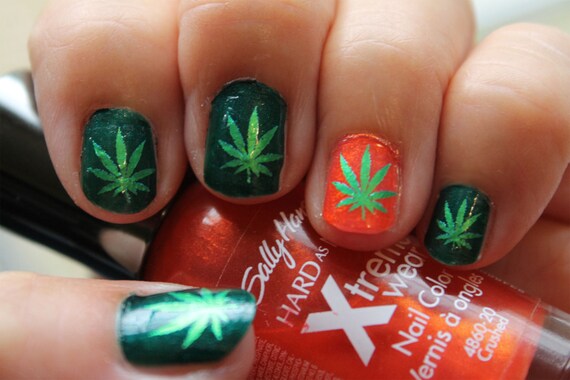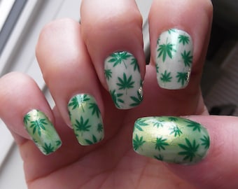 Pot Leaf Nail Art Decals Ptf Full Nail Wrap Decoration Green Etsy