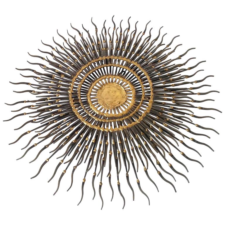 Sunburst Wall Art Made Of Cut Nail And Brass Welding By Bela 1970s