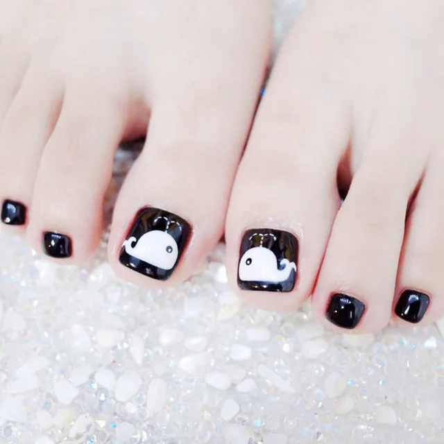Fashion 24pcs Set Black Lovely Little Whale Pattern Design Toes