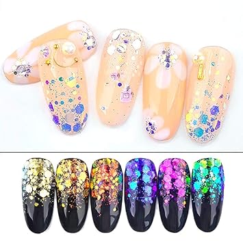 Amazon Com Iridescent Glitter 6 Jars 0 2 2mm Glitter Translucent 6
