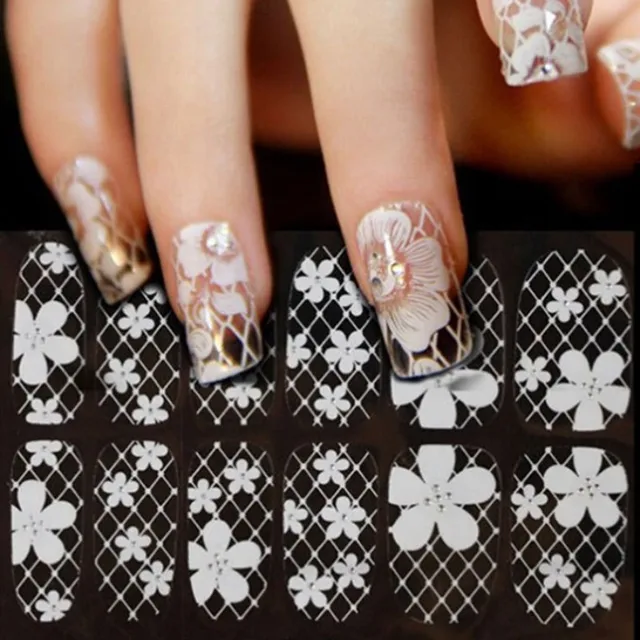 Ultrathin Transparent Nail Art Stickers White Lace Manicure