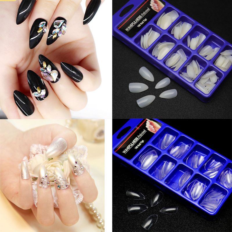 Transparent Nail Art Full Cover Oval Stiletto False Fake Nails Tips