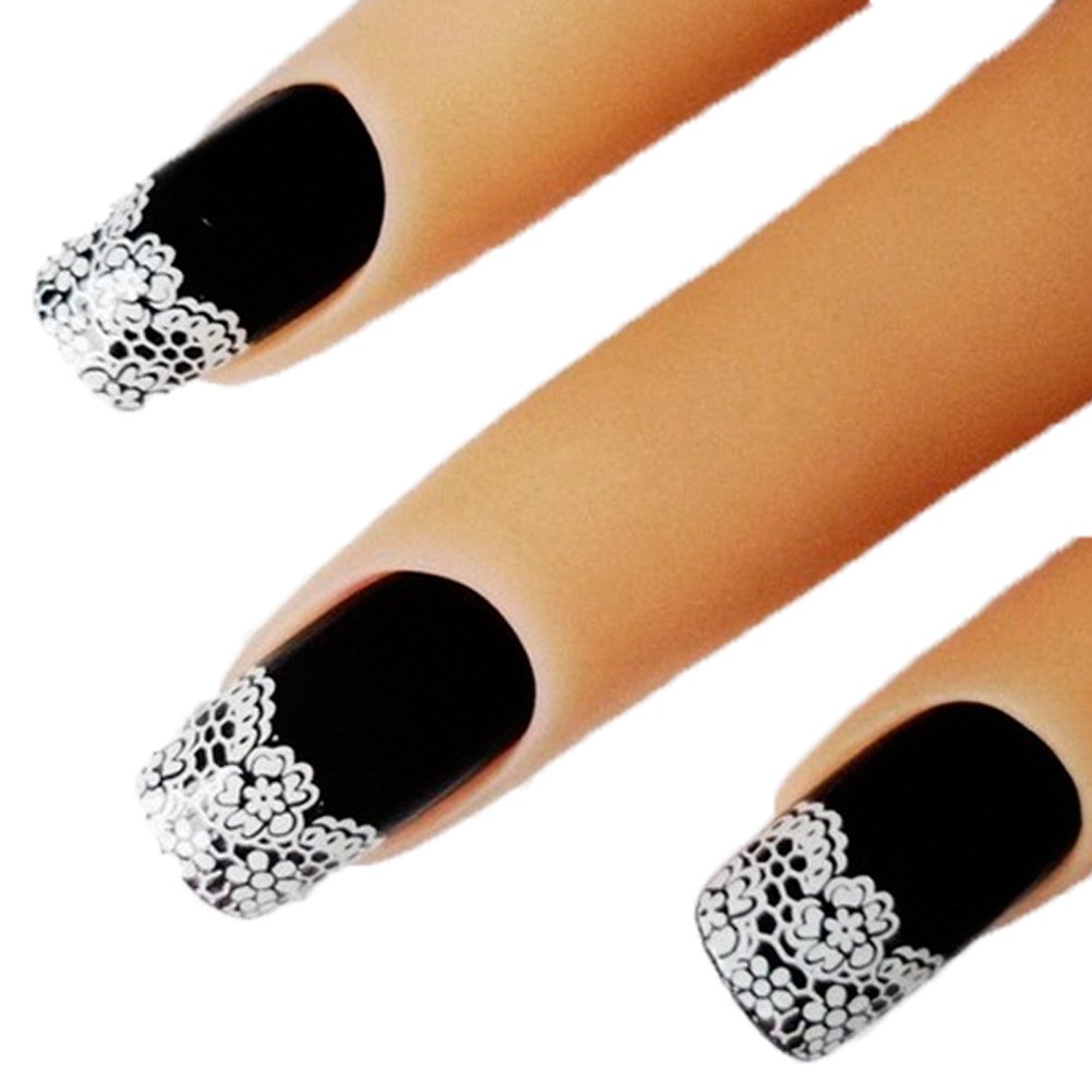 Amazon Com Allydrew Black White Lace Nail Stickers Fashionable 3d