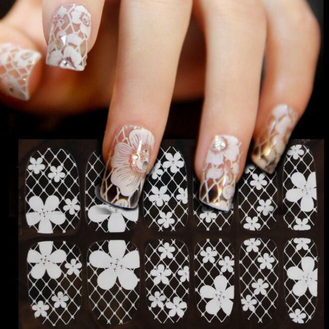 Nail Art Stickers White Lace Nail Stickers 3d Fake Nails Stickers
