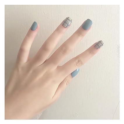 Amazon Com Meniliths 24pcs Blue And Gray False Nail With White Line