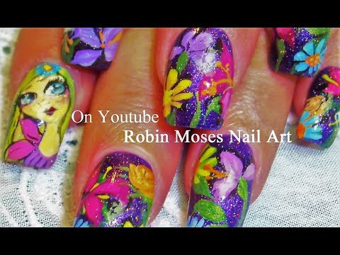 Spring Nails Girl In A Wild Flower Glitter Garden Nail Art Design