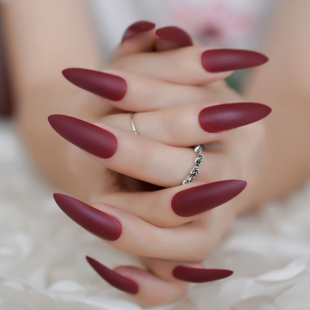 Amazon Com New 24pcs Matte False Nail Pointed Soft Wine Red Fake