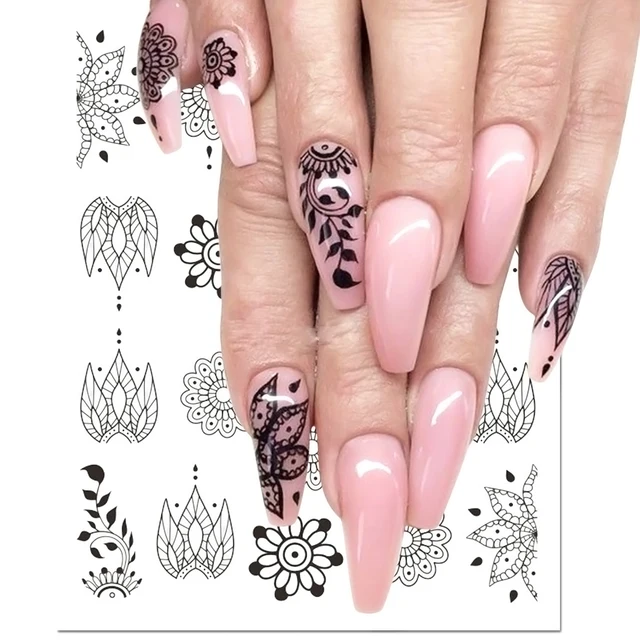 1pcs Black Flower Nail Sticker Water Decals Hollow Tattoo Flora