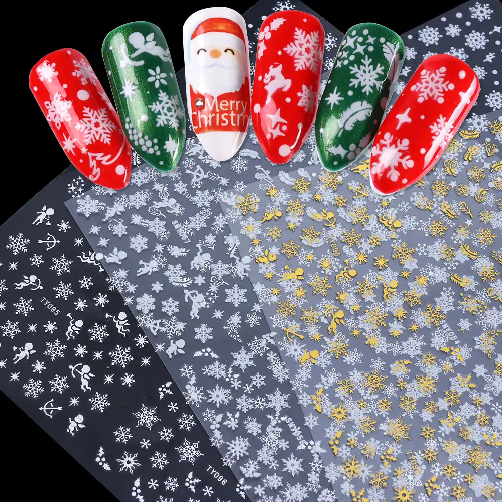 Romantic 3d Nail Art Tips Winter Christmas Snowman Snowflakes Decals