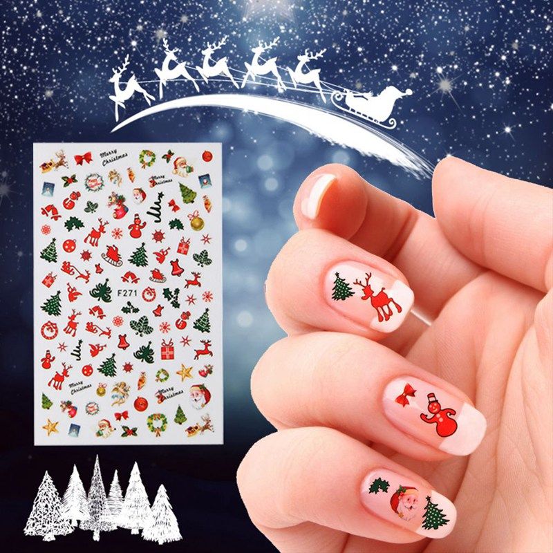 Xmas 3d Design Nails Art Sticker Xmas Tree Santa Red Green Winter