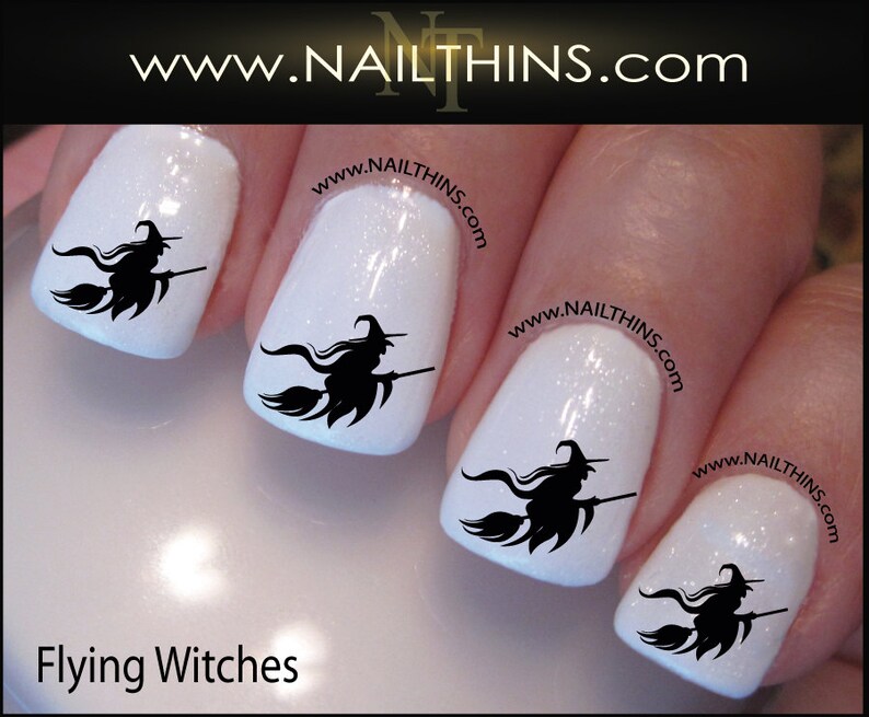 Witch Nail Decal Halloween Flying Witch On Broom Nail Art Nail Etsy