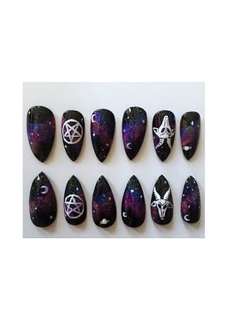 Ravenailz 10 Satanic Galaxy Stiletto Nails False Press On Gothic
