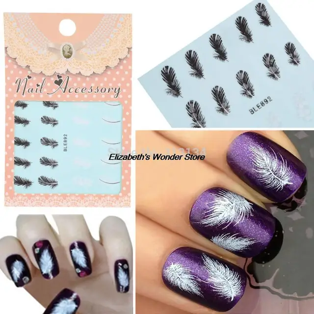 20pcs Sheet Nail Art Stickers Wrap Tips Black White Feathers Water