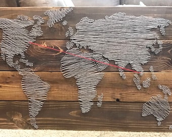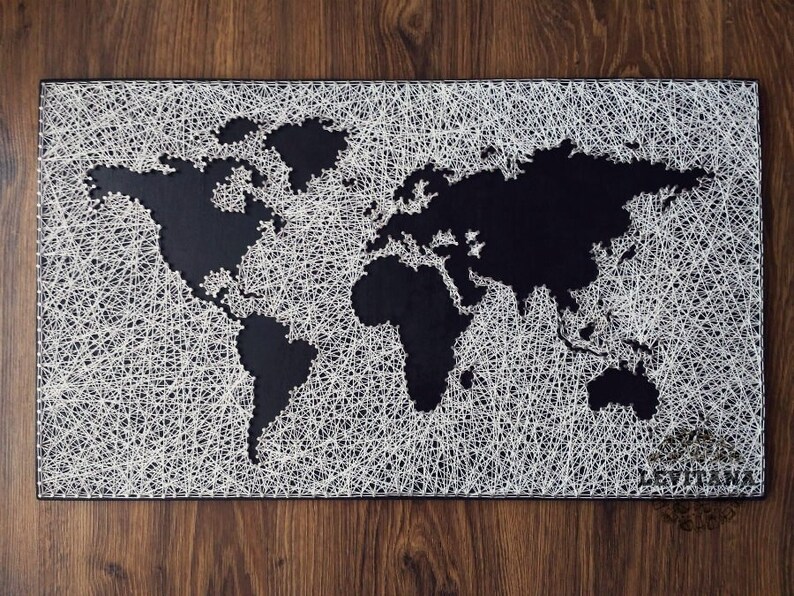 26x16 World Map Wall Art String Art Map World Map Art Wall Art