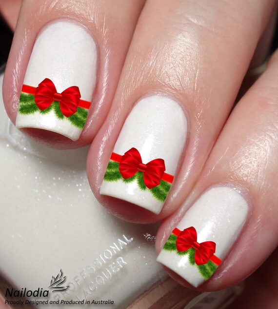 Xmas Bow Nail Art Stickers Decal Wrap Etsy