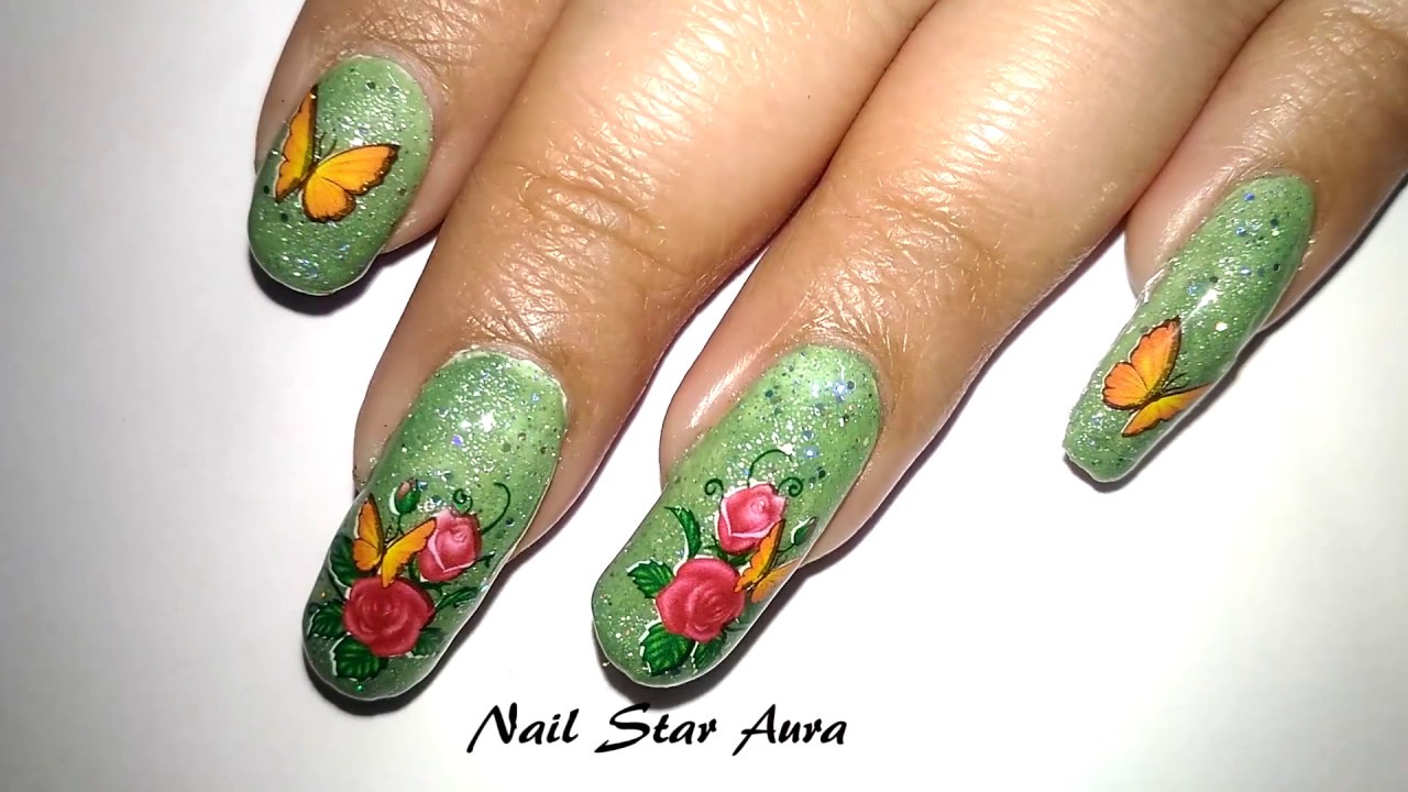 How To Paint A Butterfly In A Garden ƹӝʒ Nail Art Design Tutorial